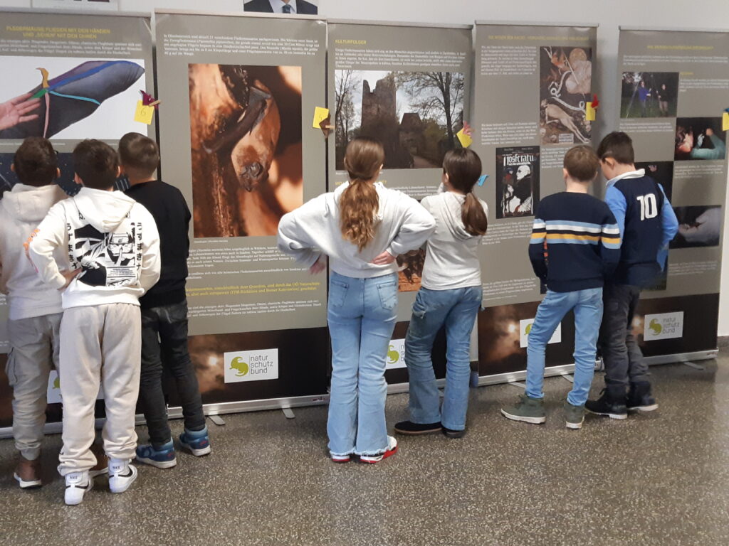 Die Ausstellung „Fledermäuse – Faszinierende Jäger der Nacht“ haben wir vom Naturschutzbund OÖ ausgeliehen und bei uns in der Schule aufgebaut. Die Schülerinnen und Schüler informierten sich im Rahmen des Aktiv-Workshops ausführlich über Fledermäuse und bereiteten eine Präsentation anhand der Ausstellung vor.